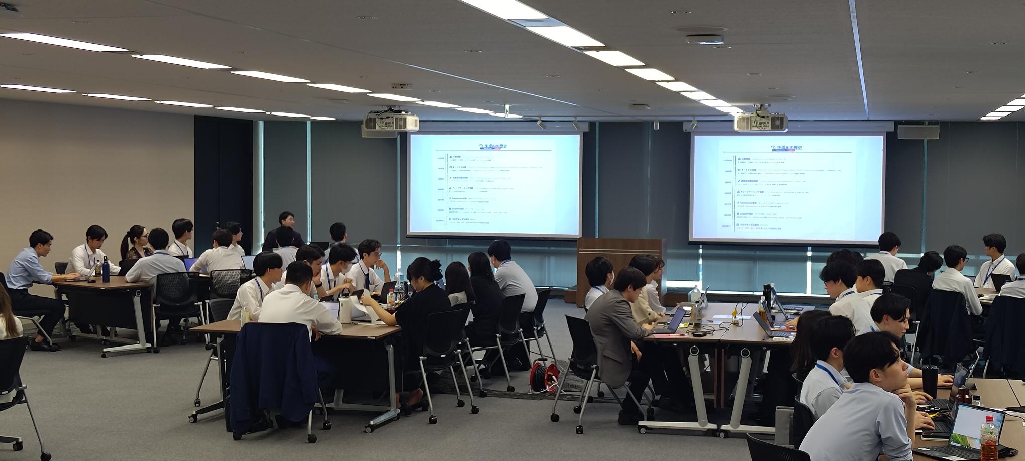 第1講では、導入として生成AI概論の講義を行った。講師は、入社2年目のAI・デジタル戦略推進部のスタッフである。本講義では、座学だけに止まらず、その場で実践してみるハンズオンを組み合わせることで、1)AI活用に対する心理的ハードルを引き下げ、2)各参加者の実務の場での再現可能性を高めるとともに、3)講義中の集中力維持や脱落防止に配慮した構成としている。