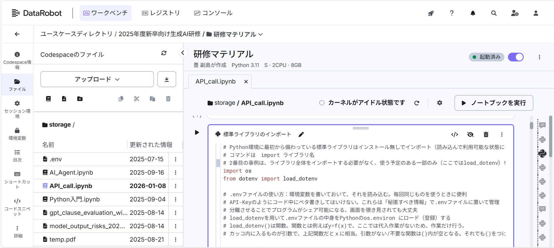 図表4 DataRobotのCodeSpacesイメージ